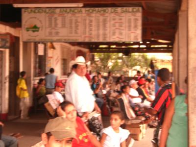 irgendwo beim umsteigen. der Mann im weissen Hemd und weissem Hut verkauft uebrigens Medikamente und Cremes aus dem Plastikbeutel! Der Apotheker sozusagen!